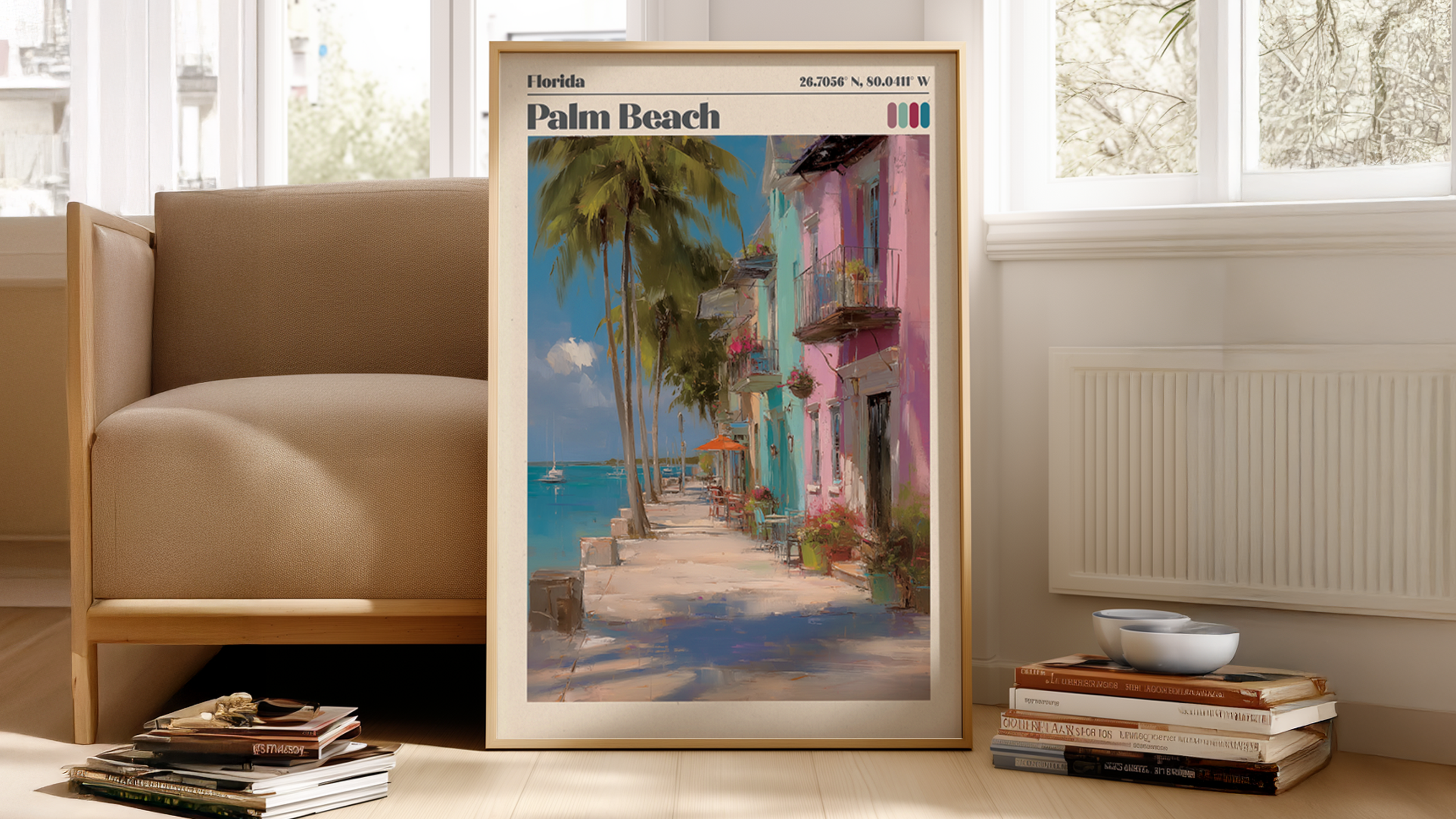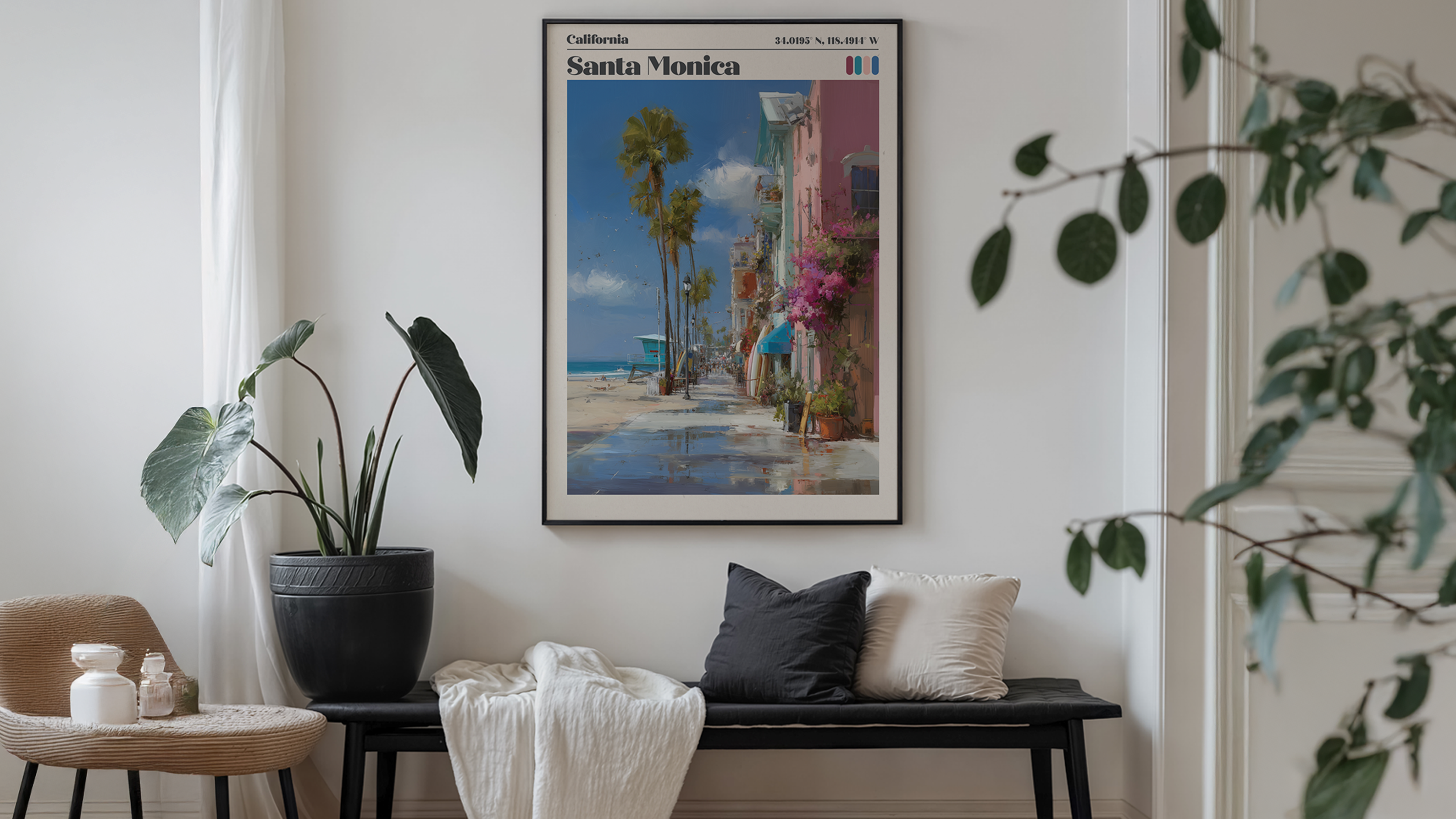 Soft, pastel travel prints inspired by America’s most loved beach towns — crafted for calm, modern US homes.